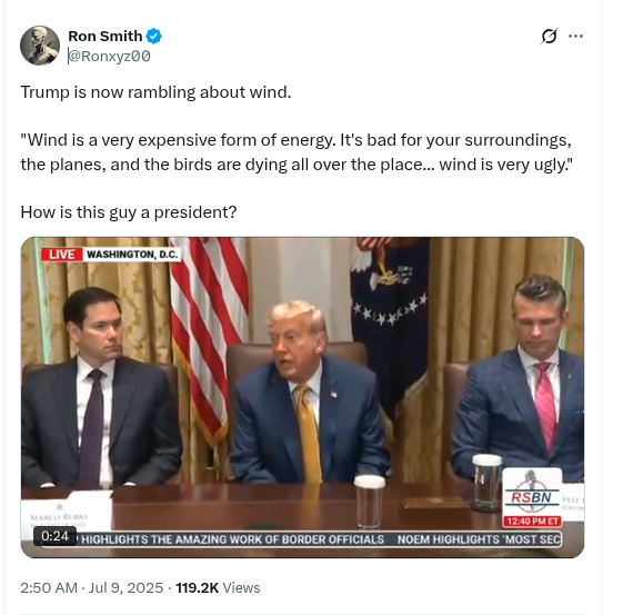 TRUMPS IGNORANT RAMBLINGS ABOUT SUPER SUCCESSFUL WIND ENERGY, THAT HAS MADE EUROPE ENERGY FREE OF RUSSIAN GAS IN 4 YEARS
