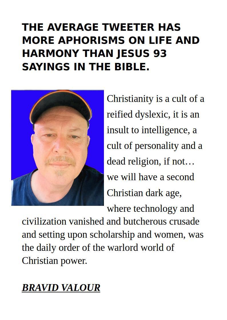 Administrator PagesTHE AVERAGE TWEETER HAS MORE APHORISMS ON LIFE AND HARMONY THAN JESUS 93 SAYINGS IN THE BIBLE.0 likesBy Administrator1 Sep 2025