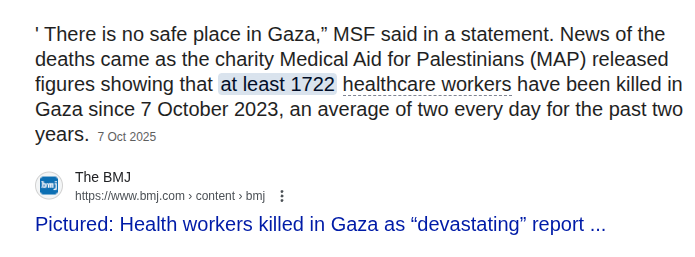 Administrator Pages1700 HEALTH CARE WORKERS KILLED BY THE IDF, A MASS ATROCITY WAR CRIME ORDERED BY NETANYAHU, BECAUSE MISSILES ARE PRECISE AND DIRECTED, NOT ACCIDENTAL0 likesBy Administrator24 Oct 2025